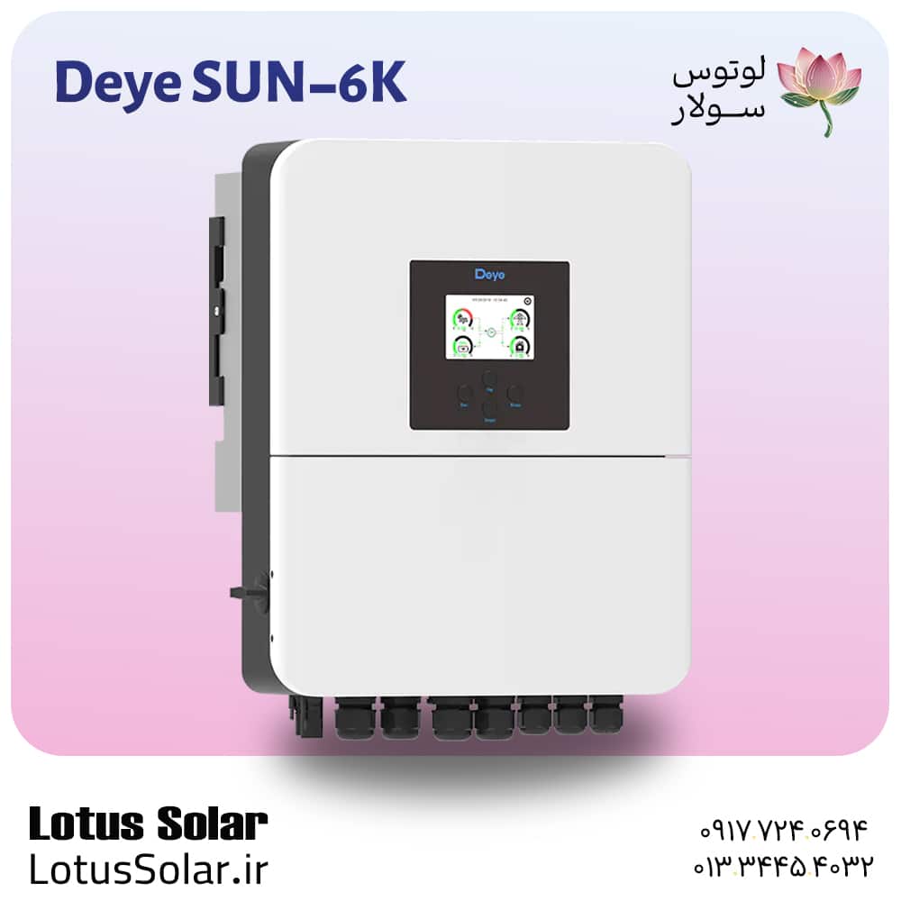 اینورتر Deye SUN-6K با قابلیت کار در حالت‌های متصل به شبکه و مستقل، ذخیره انرژی از ژنراتور دیزلی و مانیتورینگ از راه دور، گزینه‌ای کارشناسی برای کاهش هزینه‌ها و پایداری انرژی است و می‌تواند با خدمات نصب پنل‌های خورشیدی لوتوس سولار ترکیب شود.
