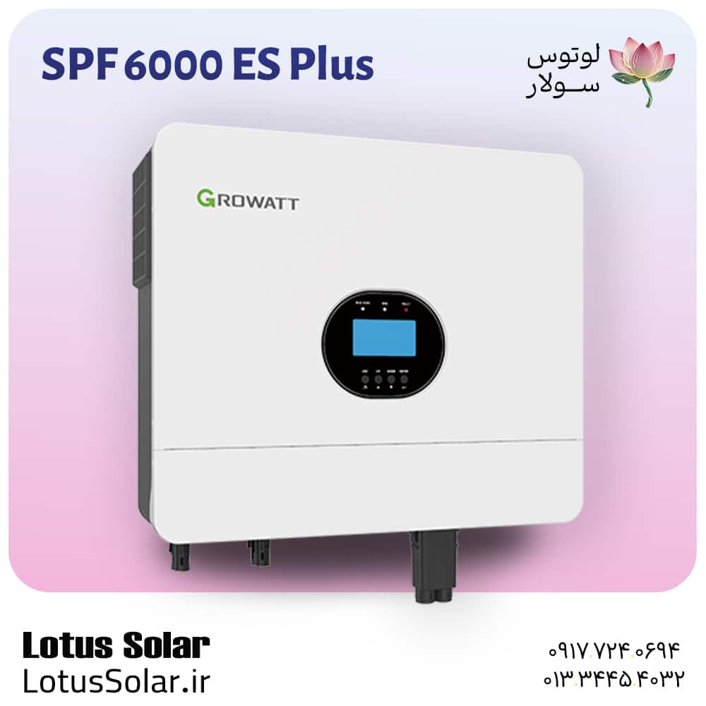 سانورتر Growatt SPF 6000 ES Plus با دو ورودی AC (شبکه و ژنراتور) و قابلیت موازی تا 6 واحد، گزینهای کارشناسی برای سیستمهای آف گرید پایدار است و میتواند با خدمات نصب پنلهای خورشیدی لوتوس سولار ترکیب شود.